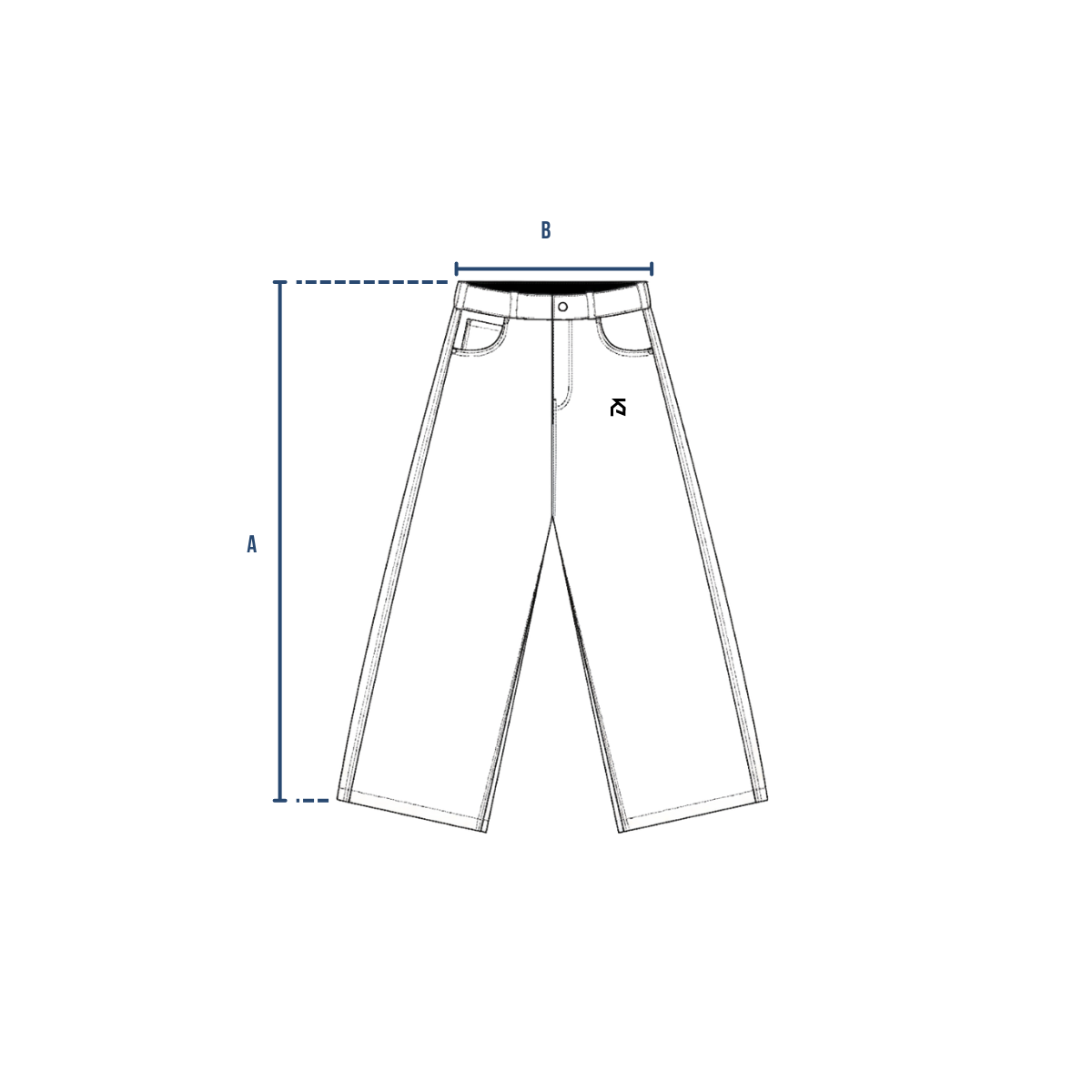 | Talle | Cintura (A) | Largo (B) |