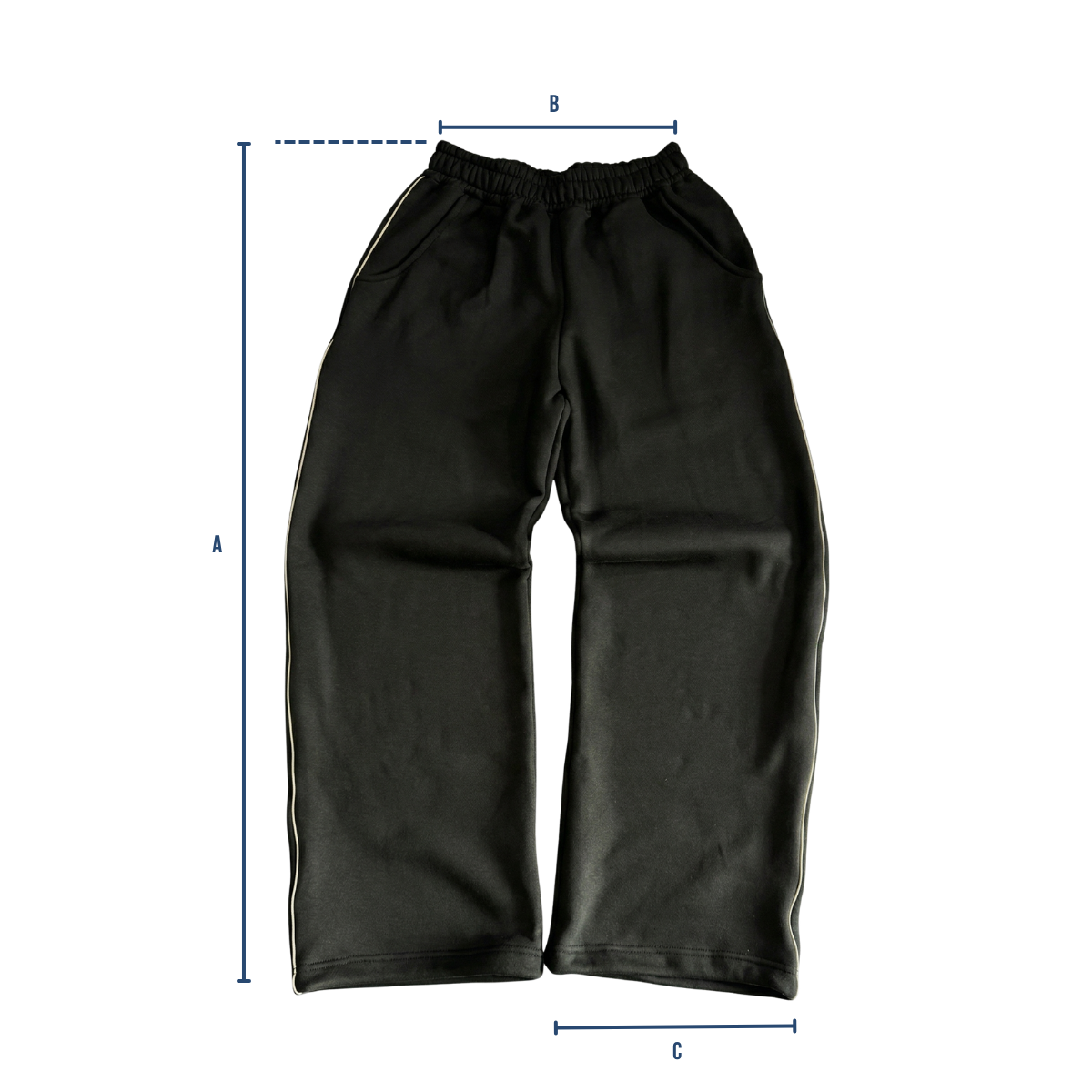 | Talle | Cintura (A) | Largo (B) | Botamanga (C) |